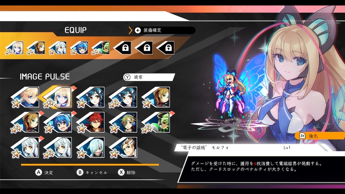 おなじみの装備である自動発動の無敵バリア、"電磁結界<カゲロウ>"も今回はこのパッシブ枠に含まれており、一番最初に確定入手するイマージュパルスとなっています。
