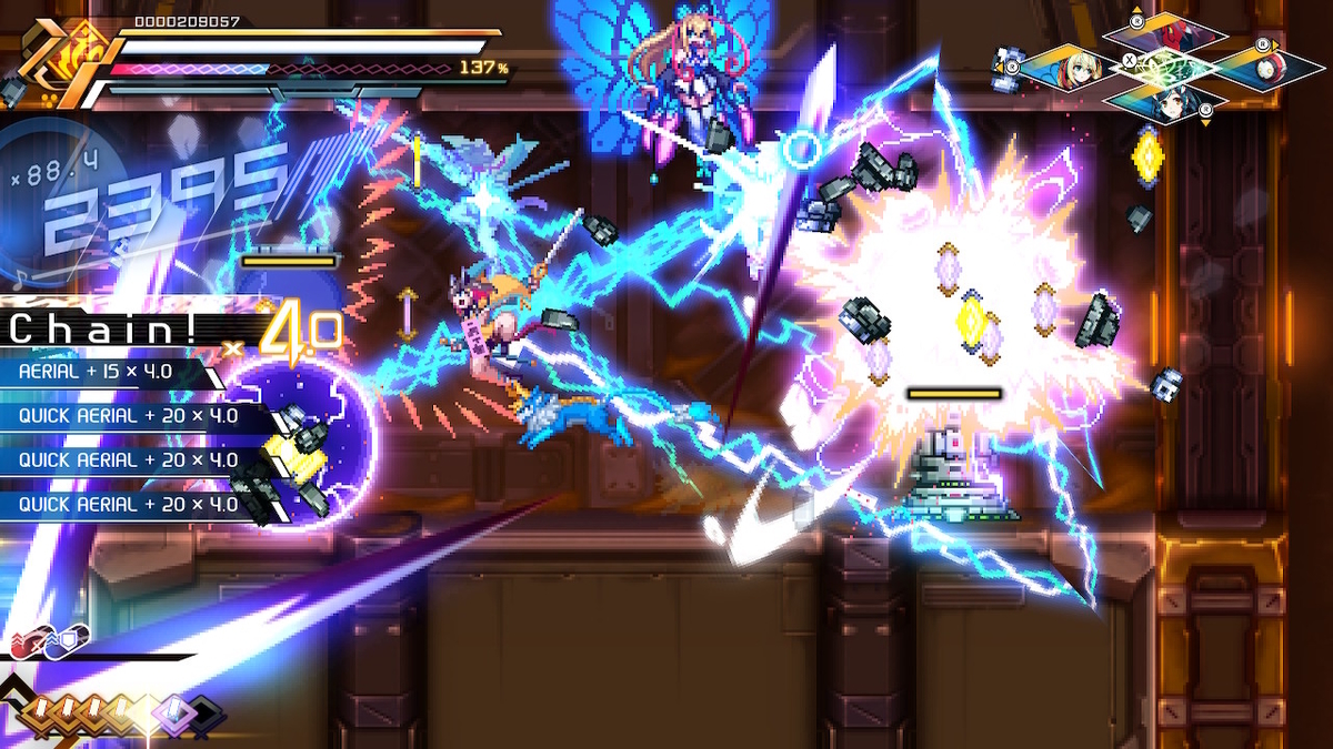 もともと間口の広いガンヴォルトシリーズのやり込み要素として存在していたスコアアタックですが、今作ではスコアアタックの魅力であるアクションの疾走感や歌の高揚感、それに伴う緊張感といった要素をより誰でも味わいやすいものにしつつ、やり込みの奥深さも両立してみせるという、更なる進化を遂げて戻ってきました。